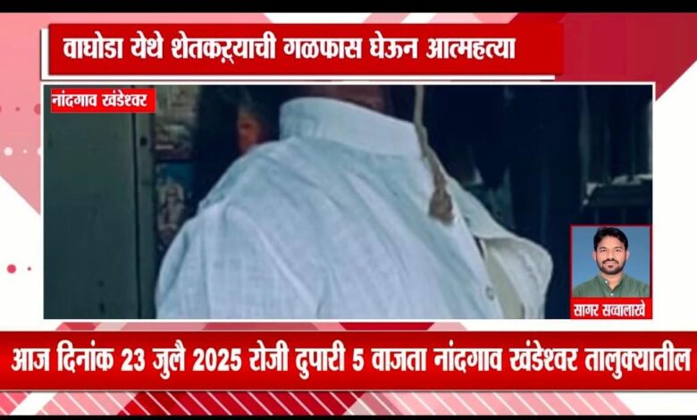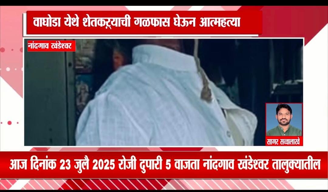 आज दिनांक 23 जुलै 2025 रोजी दुपारी 5 वाजता नांदगाव खंडेश्वर तालुक्यातील वाघोडा येथील शेतकरी तुकारामजी भलावी वय वर्ष 68 यांनी त्यांच्या राहत्या घरी गळफास घेऊन आत्महत्या केली. सतत शेतीमध्ये होणारे नुकसान व पिकाला न मिळालेले भाव यामुळे त्यांनी आत्महत्या केली. सरकारने कर्जमाफी करणार म्हणुन घोषणा केली पण न केलेला सातबारा कोर्याला मुख्य कारण आहे अशी चर्चा गावाकर्यांकडून व्यक्त होत आहे. त्यांच्या कडे 4 एक्कर शेती आहे. त्यांच्या मागे 2 मुले व 1 मुलगी (मोठा मुलाचे निधन झाले आहे) 3 नातू व पत्नी एवढा मोठा आप्त्यपरिवार आहे. त्यांची पत्नी सुद्धा सेवाग्राम हॉस्पिटल वर्धा येथे भरती आहे. त्यांच्या या निधनाने वाघोडा गावात शोककळा पसरली आहे.