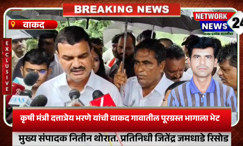कृषी मंत्री दत्तात्रेय भरणे यांची वाकद गावातील पूरग्रस्त भागाला भेट